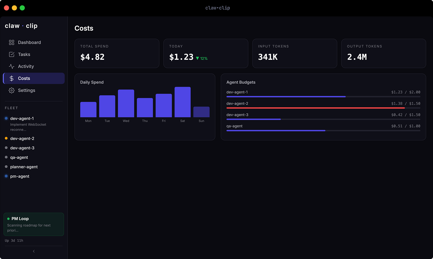 The name is a nod to Paperclip, an open-source project that beat me to market with the same idea — orchestrating teams of AI agents with org structure, budgets, and governance. Great minds, etc. Where Paperclip is a cloud platform designed for enterprise teams running agents from any provider, claw.clip is a daemon — it runs 24/7 on bare metal, spawns Claude Code sessions directly via the CLI, and manages everything through files and git worktrees. It’s built for a solo operator on her own hardware, not a team on a cloud dashboard. I have much to do before it’s ready for a public repo, but follow along if you want to check it out as soon as it’s live.