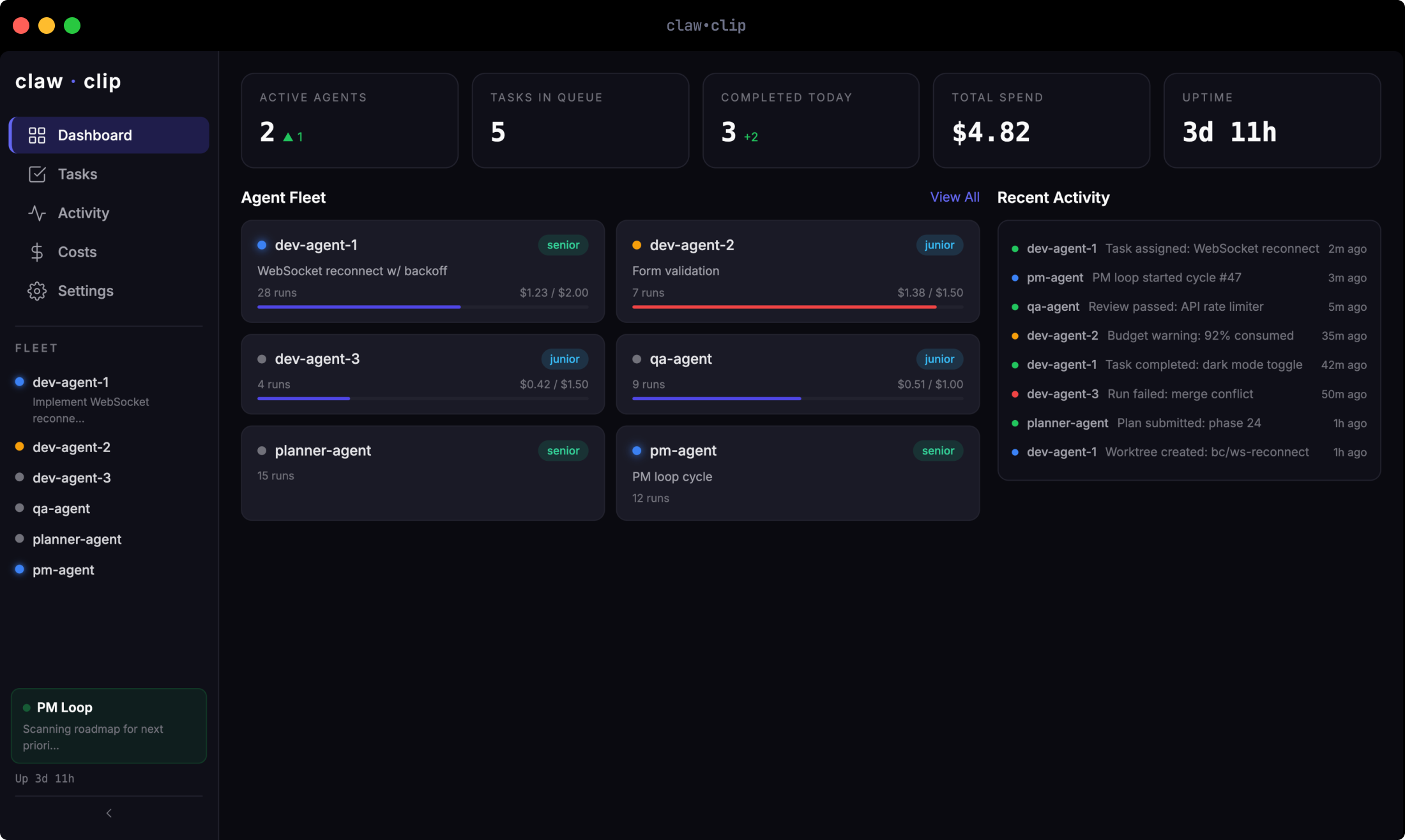 The name is a nod to Paperclip, an open-source project that beat me to market with the same idea — orchestrating teams of AI agents with org structure, budgets, and governance. Great minds, etc. Where Paperclip is a cloud platform designed for enterprise teams running agents from any provider, claw.clip is a daemon — it runs 24/7 on bare metal, spawns Claude Code sessions directly via the CLI, and manages everything through files and git worktrees. It’s built for a solo operator on her own hardware, not a team on a cloud dashboard. I have much to do before it’s ready for a public repo, but follow along if you want to check it out as soon as it’s live.