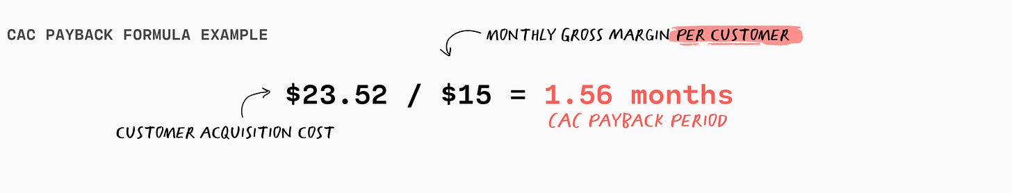 CAC payback period replaces LTV as the third metric because it’s concrete. Under three months is excellent. Three to six is decent. Over twelve is a conversation with your CFO about how long the balance sheet can fund acquisition before it pays for itself.