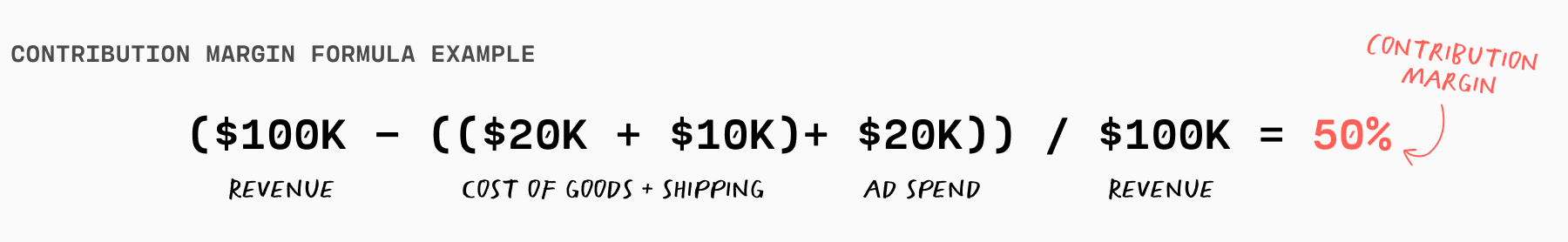 But revenue alone doesn’t tell you enough, either. A brand doing $10M on $2M in ad spend looks efficient until you count COGS, shipping, returns, and customer service. Contribution margin (CM2 or CM3) forces the full accounting. CM2 includes variable costs. CM3 includes marketing spend. If your CM3 is negative, your growth is subsidized, and you need to know that before your next board meeting.